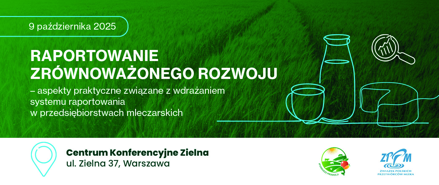 Związek Polskich Przetwórców Mleka zaprasza na bezpłatne szkolenie pt.: „Raportowanie zrównoważonego rozwoju – aspekty praktyczne związane z wdrażaniem systemu raportowania w przedsiębiorstwach mleczarskich“ …