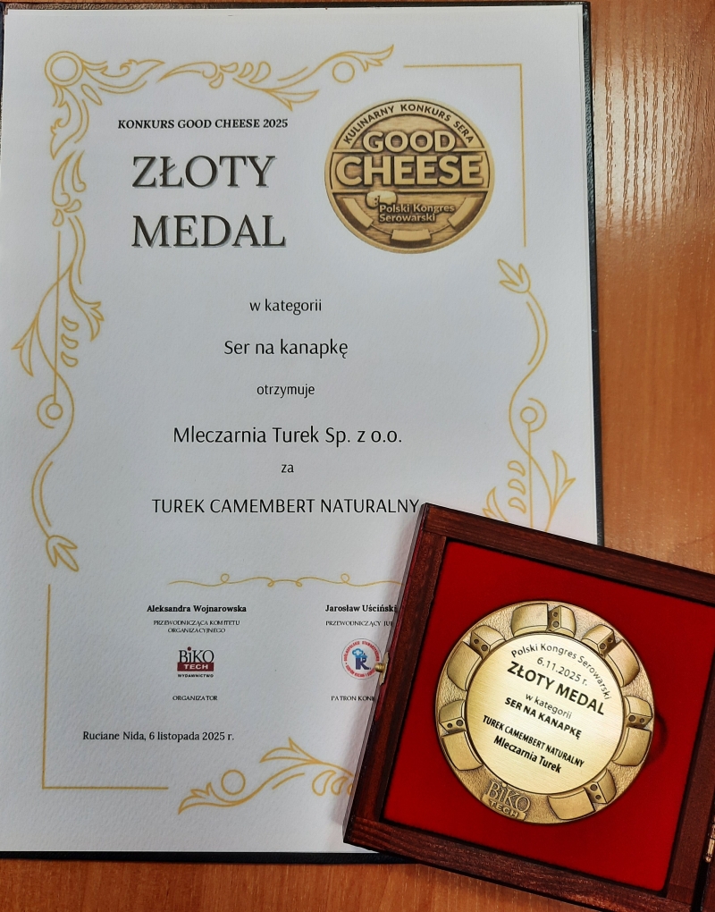 Podczas XIV Polskiego Kongresu Serowarskiego, który odbył się w dniach 5–7 listopada 2025 r.Turek Camembert naturalny zdobył złoty medal w prestiżowym konkursie Good Cheese w kategorii „Ser na kanapkę”.
