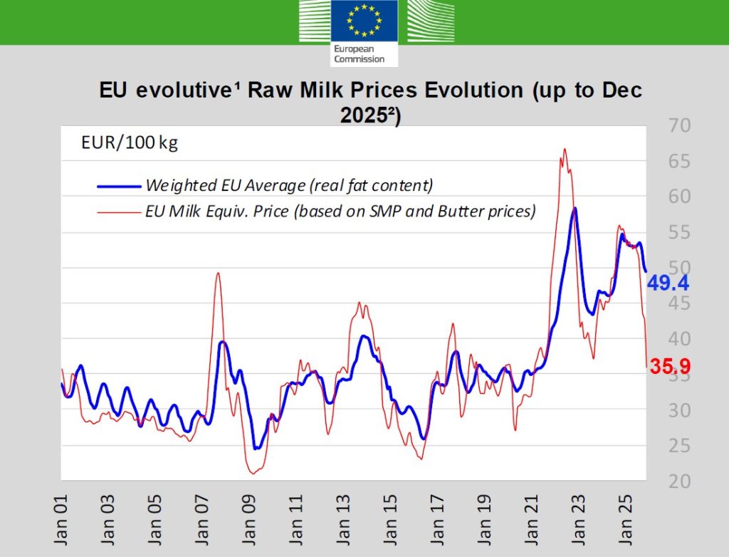 W dniu 14 stycznia 2026r. w ramach tzw. Obserwatorium Rynku Mleka (MMO) Komisja Europejska opublikowała najnowsze dostępne dane statystyczne dotyczące unijnego i światowego rynku mleka.